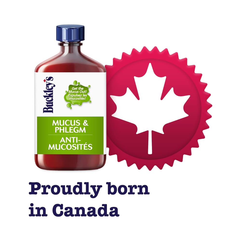 Buckley's Expectorant - Cough Mucus & Phlegm is formulated to provide fast-acting relief for up to 6 hours from cold and flu symptoms, including coughs, nasal and sinus congestion, and chest congestion. It works by loosening and thinning mucus and phlegm in the lungs, facilitating their expulsion. This product is available in 150 mL bottles.