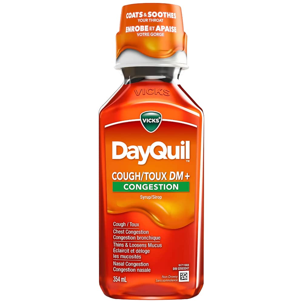 Vicks DayQuil Cough & Congestion Relief Liquid Medicine is a liquid medication formulated to provide non-drowsy relief from multiple cold and flu symptoms. This product is designed to control cough, relieve chest congestion, reduce mucus, and alleviate nasal congestion. The active ingredients include dextromethorphan HBr as a cough suppressant, guaifenesin as an expectorant, and phenylephrine HCl as a nasal decongestant. It's important to follow the dosing instructions and consult a healthcare professional if symptoms persist.