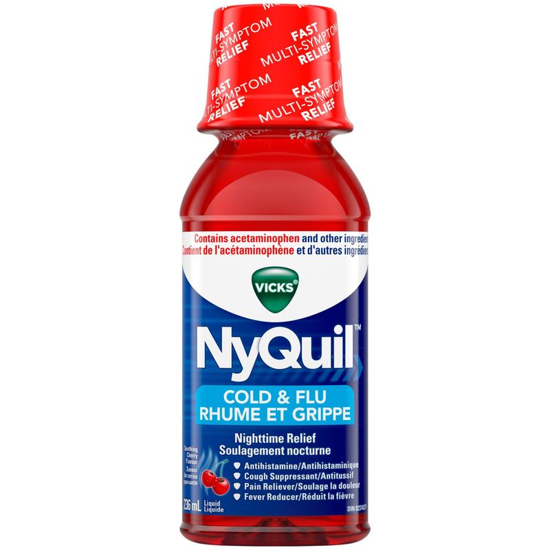 NyQuil Cold & Flu Nighttime Relief Liquid, Soothing Cherry, 236 mL