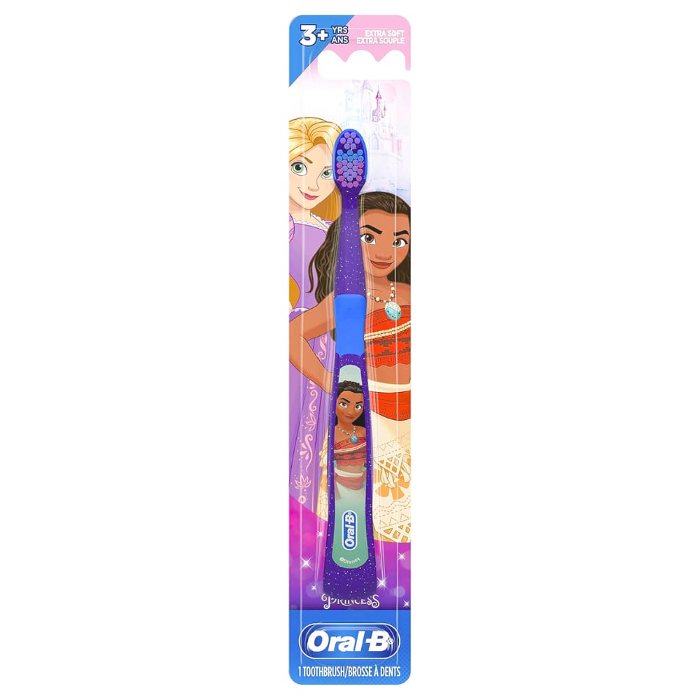 See Their Smile Grow. The Oral-B Kid’s Manual Toothbrush featuring Disney’s Princess characters is the perfect kid’s toothbrush for your own little princess. This toothbrush is sized to surround and clean their pearly whites and reach tricky back teeth while helping to protect tender gums with soft bristles. Best of all, this toothbrush is compatible with the interactive Disney MagicTimer App by Oral-B to help your kids brush for a dentist-recommended 2 minutes. Oral-B, the brand more dentists use themselves worldwide. Dinsey Princess may vary