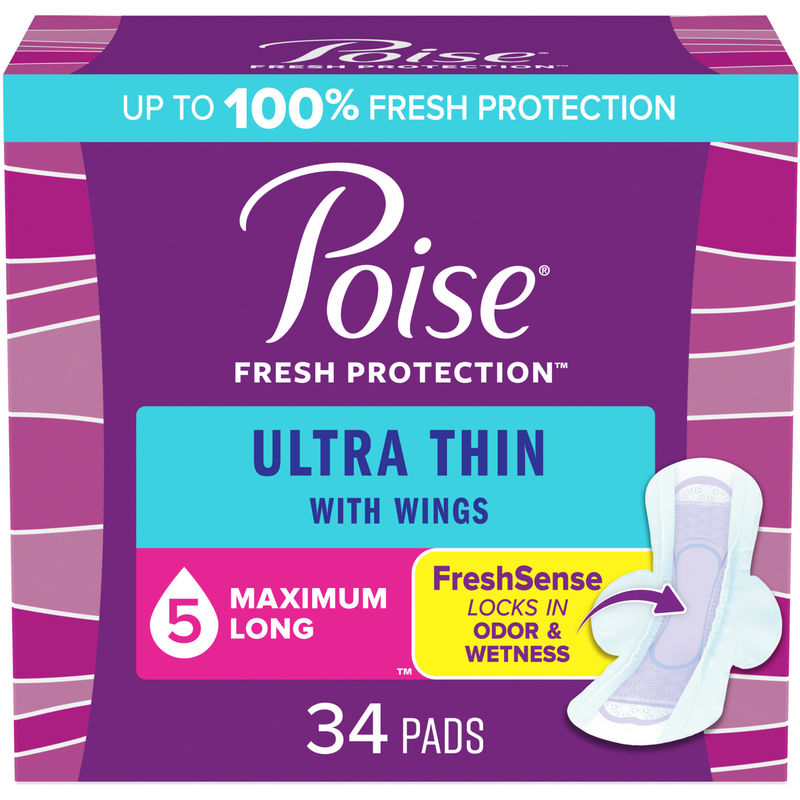 Poise Ultra Thin Postpartum Incontinence Pads, Maximum Absorbency, Long Length, 20 Count