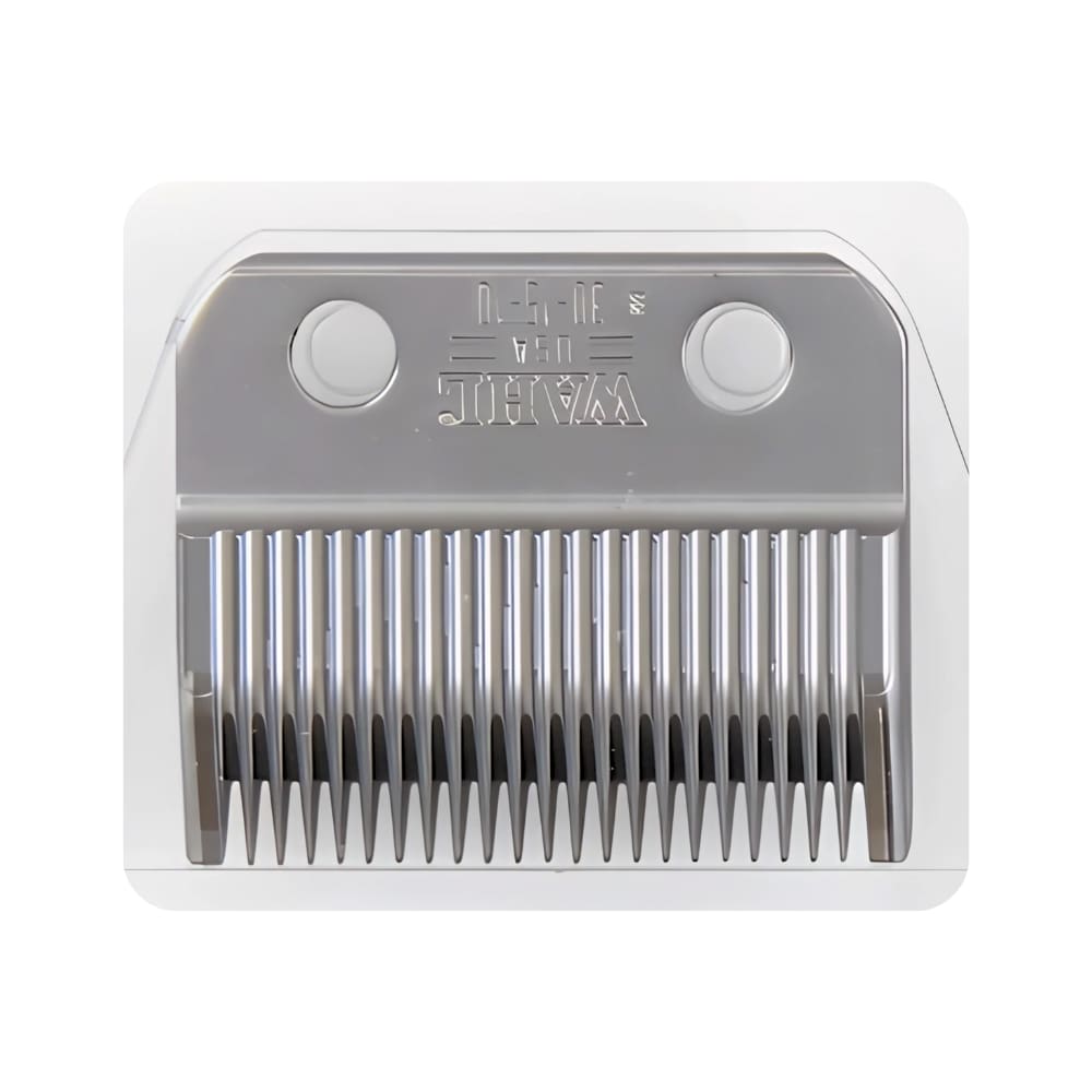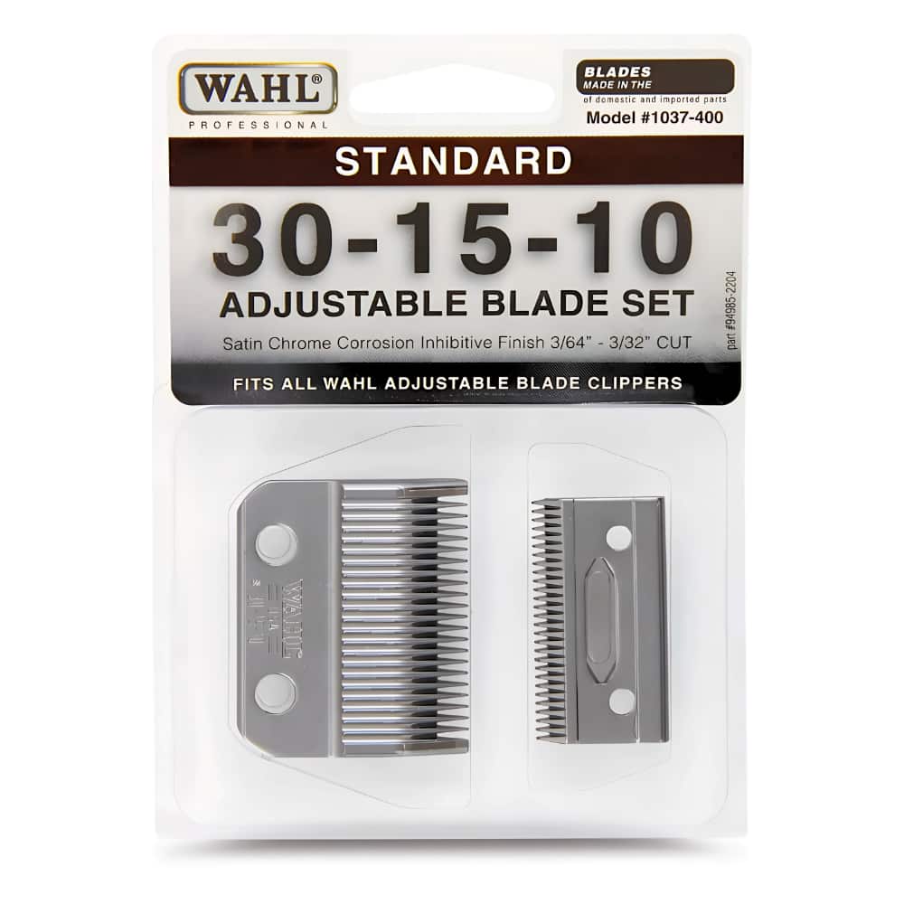 The Wahl Repl Reg Blade Set is an adjustable blade kit designed to deliver sharp and uniform cuts, offering multiple length options through its high-precision steel construction. Its chrome finish helps preserve sharpness and allows for easy cleaning after each use. The blades are engineered to fit compatible devices that require consistent cutting performance, providing reliable results during extended use.